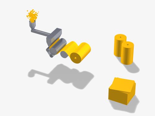 Die meisten unserer Folien (Wanddicke < ca.1,5mm) und Platten (Wanddicke > ca. 1,5mm) werden mittels Extrusion hergestellt. Die Herstellung von einschichtigen Monofolien und mehrschichtigen Coexfolien sind dabei für uns selbstverständlicher Standard.
