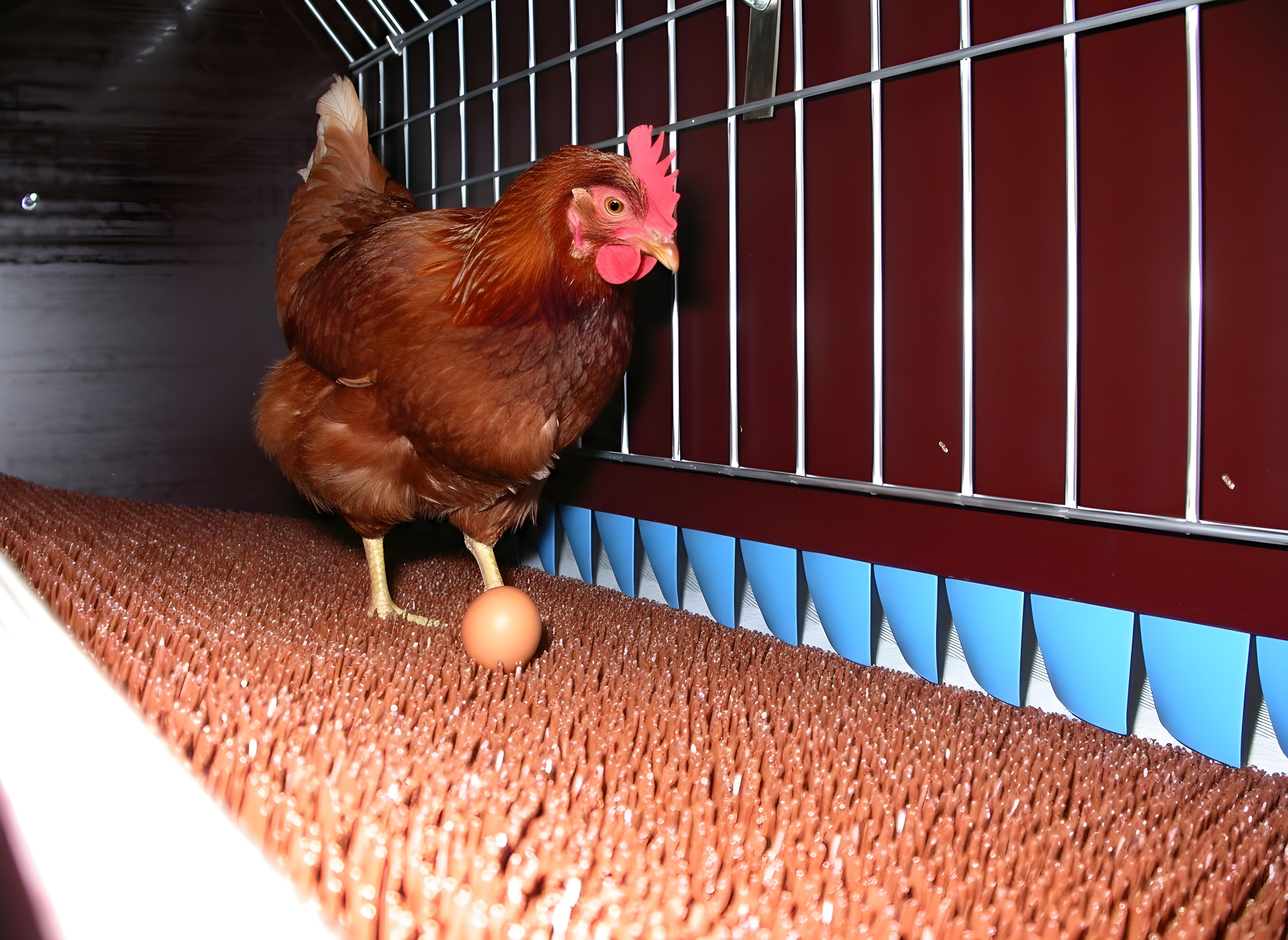 The open structure of the new Nest Pad combined with the special shape and high flexibility of its individual blades, ensure that the eggs roll onto the conveyor belt safely and without contamination.